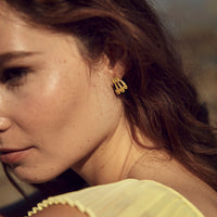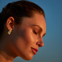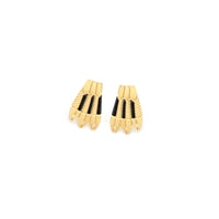 • Petites boucles d'oreille puces dorées à l'or fin, ajourées, gravées et finement émaillées. Le motif plumage souligne délicatement le lobe.