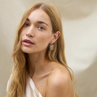 Créoles composées surplombées d'un motif de feuillage posé sur un anneau. Le motif du feuillage est inspiré par les feuilles élégantes et délicatement ciselées d'un arbuste appelé Sorbaria Sorbifolia. En laiton doré à l'or fin. Des boucles d'oreille très élégantes et féminines.