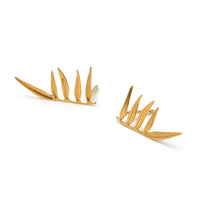 Grandes puces finement découpées qui imitent le feuillage ciselé de l'arbuste appelé Sorbaria Sorbifolia. En laiton doré à l'or fin. Des puces délicates et très légères, originales et très féminines.