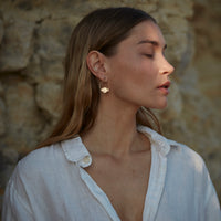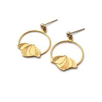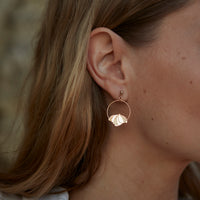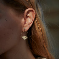 • Petites créoles composées d'un petit anneau surmonté d'une petite fleur en forme de clochette. Le motif gravé est inspiré par les fleurs clochettes vertes qui ornent l'arbuste charentais appelé Euphorbe. En laiton doré à l'or fin. Des petites boucles d'oreille sobres, légères et aériennes.