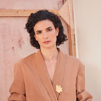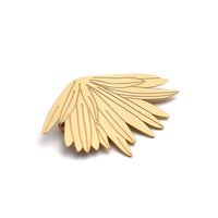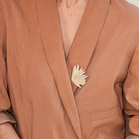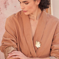 • Grande broche dont le motif de bouquet est inspiré par les feuilles oblongues de l'Euphorbe, une plante généreuse et résistante du littoral charentais. En laiton doré à l'or fin. Un modèle singulier et élégant à la forte personnalité, parfait pour pimper une tenue sobre. Le motif s'articule autour de feuilles gravées qui semblent s'épanouir au soleil comme un bouquet.