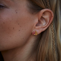 • Petites boucles d'oreille puces délicates dont le motif est inspiré par les petites fleurs clochettes vertes qui ornent l'arbuste charentais appelé Euphorbe. En laiton doré à l'or fin, rehaussées de résine colorée sur la moitié de la boucle . Colorées, joyeuses, originales mais sobres et faciles à porter.