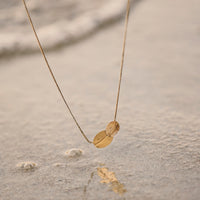 PALM COLLECTION - Thin necklace whose motif consists of 2 engraved and ribbed sheets superimposed and with a very fine chain. The motif is inspired by the banana trees and lush tropical vegetation of the Dome of the Winter Garden of the Royal Greenhouses of Laeken, in Brussels, Belgium.
