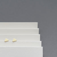 COLLECTION KERN - Petites boucles d'oreille puces dorées à l'or fin au motif de petit caillou finement gravé de grains de sable et pointillés.