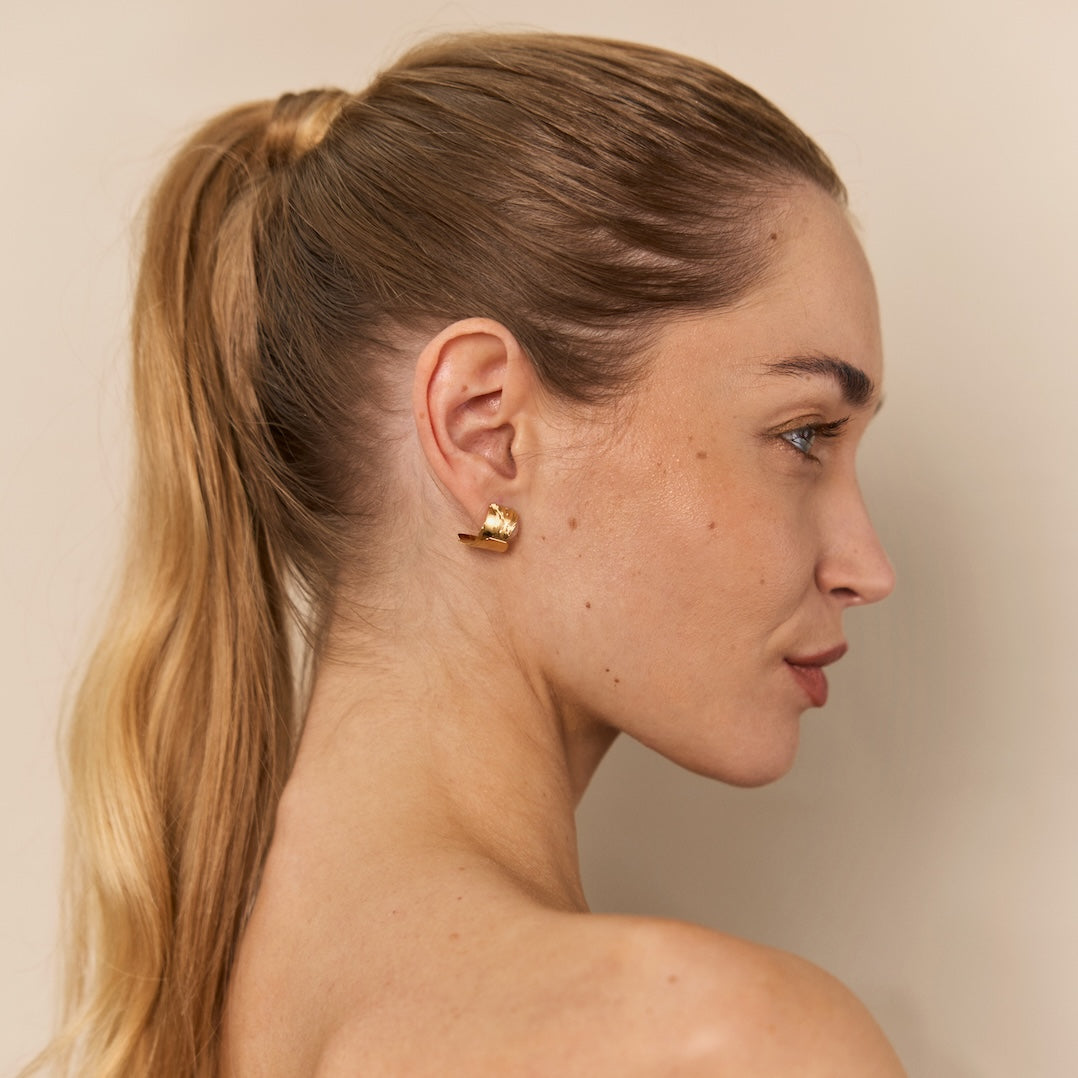 Des boucles d'oreille atypiques, ultra féminines et élégantes composées d'un motif représentant les fils d'un tissage. Le motif asymétrique et la mise en forme épousant parfaitement le lobe d'oreille en font un modèle très audacieux.