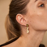 Des joyeuses boucles d'oreille mobiles composées de trois éléments qui s'emboitent l'un dans l'autre pour dessiner un motif représentant les fils d'un tissage. Très féminines et élégantes, le mouvement des boucles capte la lumière pour vous rendre encore plus éclatante. Très originales, elles restent néanmoins légères et très faciles à porter.