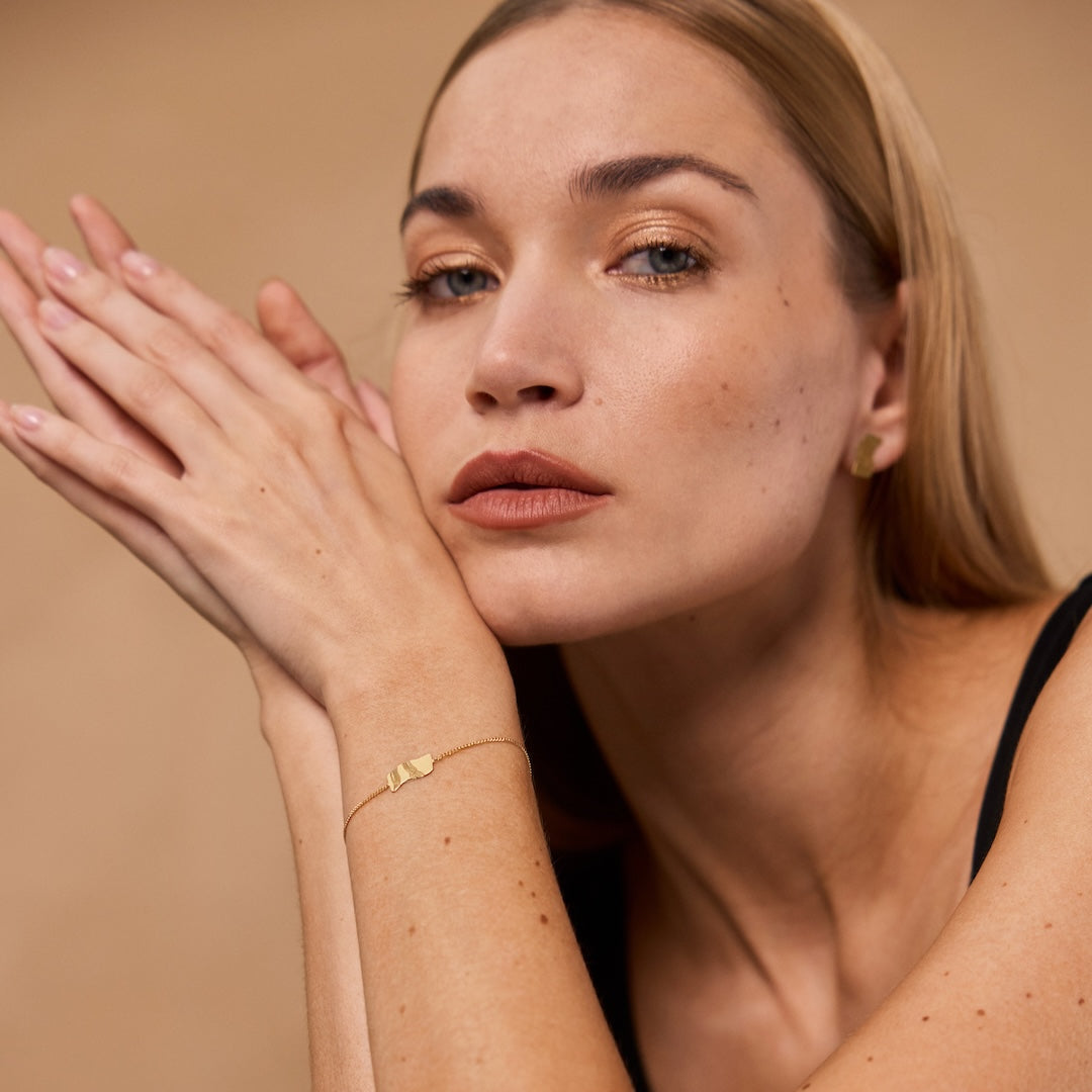 Bracelet fin au motif asymétrique représentant les fils de chaine d'un tissage. Sa surface gravée et striée fait vibrer la lumière. Avec sa forme pure et minimaliste, ce bracelet tout fin au motif unique se porte au quotidien et peut se mixer à d'autres en accumulation.
