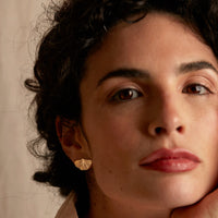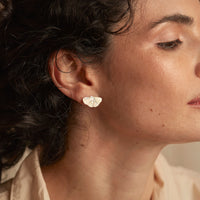 Petites boucles d'oreille puces dorées à l'or fin en forme de feuille de Ginkgo délicatement gravée et nervurée. Fines, poétiques et élégantes, les petites puces d'oreille sublimeront votre féminité.